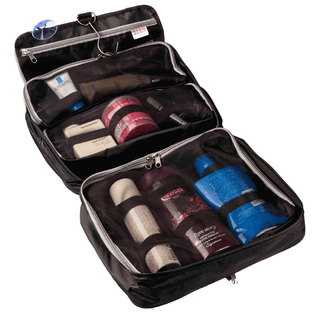 HangPac Toiletry/Overnight Bag With Hook And Suction For Mirrors Or Walls - Includes 3 Pockets
