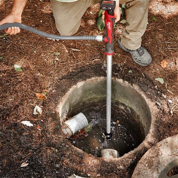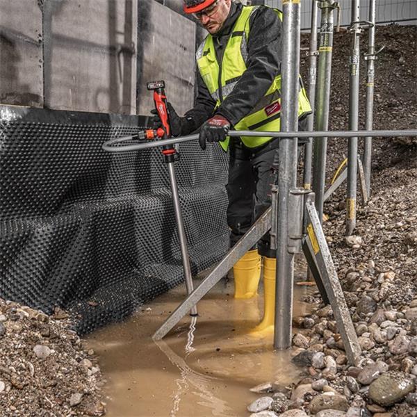 - Pumps more then 2000 l/hour and up to 1000 l on 1x M12™ 6.0 Ah battery, perfect for emptying trenches, storm drains, outside meter boxes, rain barrels and various other applications.